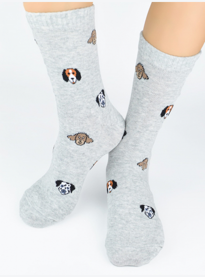Ці жіночі шкарпетки мають не стискаючий манжет, візерунок «собачка» та плоскі шви. Кольори у випадко..