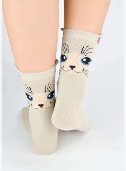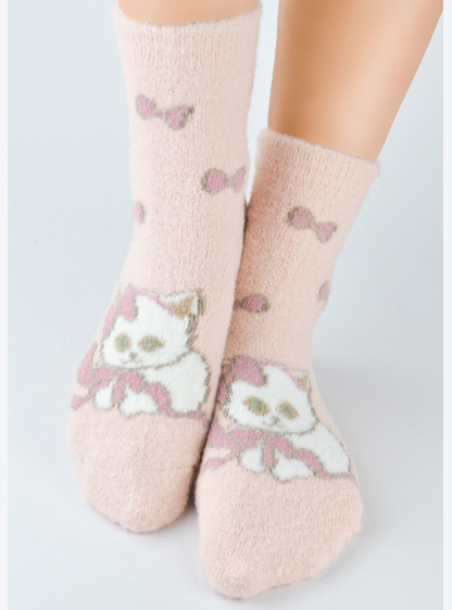 Жіночі шкарпетки з м'якої, пухкої трикотажної тканини з візерунком «кішка». Зручна, не стискає манже..