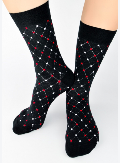 Чоловічі шкарпетки з високоякісної бавовни з декоративною чорно-сірою крапкою. Плоскі шви і манжета,..