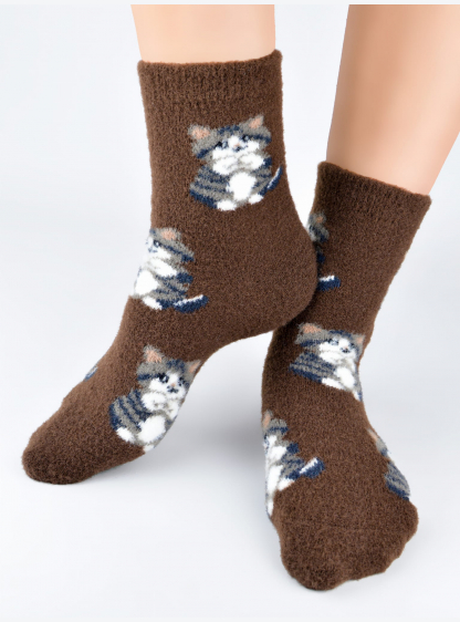 Жіночі шкарпетки з м'якої, пухкої трикотажної тканини з візерунком "кішка". Зручна манжета, що не ст..