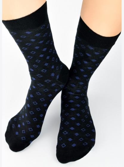 Шкарпетки чоловічі з високоякісної бавовни з декоративними темно-синіми ромбами. Плоскі шви і манжет..