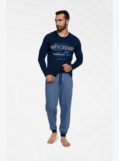 Чоловіча піжама з високоякісної бавовни. Блуза з довгим рукавом прикрашена аплікацією, довгі брюки в..