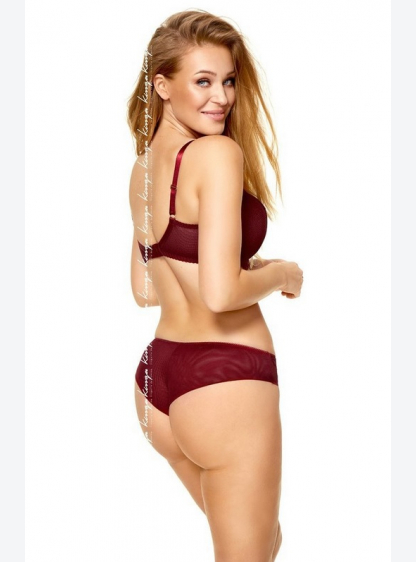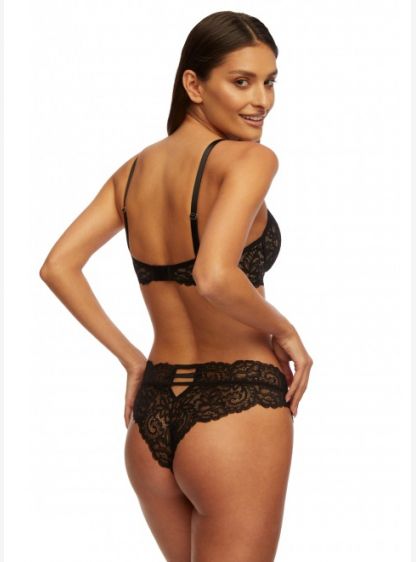 Бюстгальтер напівподкладений з поролону, мережива та сітки. Має регульовані, незнімні лямки. Боки з ..