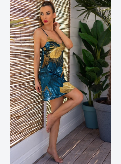 Витончена сорочка з ніжними бретелями з красивим візерунком. Комплект доповнюється ремінцями. Склад:..