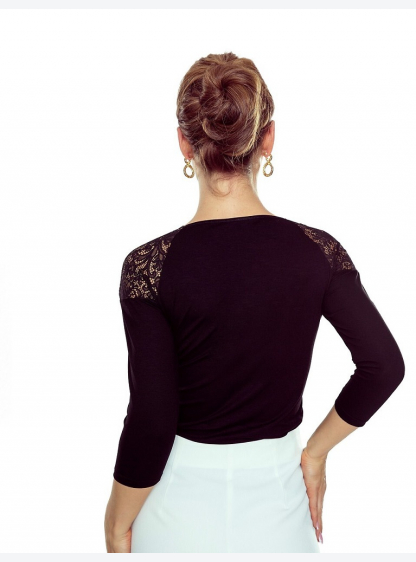 Жіноча блузка з віскози з мереживним рукавом 3/4. Склад: 75% віскоза, 20% поліамід, 5% еластан..
