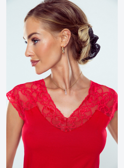 Красива сорочка з глибоким V-подібним вирізом і мереживною вставкою під бюстом. Склад: бавовна 95%, ..