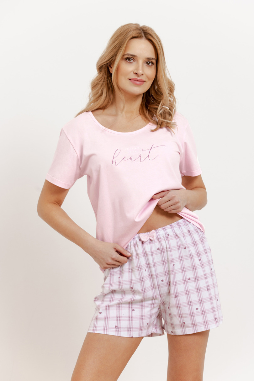 Жіноча піжама Arabella 3416 від Taro – це унікальний вибір для літніх ночей. Виготовлена зі 100% високоякісної бавовни, вона гарантує легкість, повітропроникність та максимальний комфорт під час сну. Піжама складається з простої футболки з короткими рукавами та круглим вирізом, що додає нотку витонченої елегантності. Комплект включає короткі шорти з візерунком, які привертають увагу своїм модним візерунком та чарівним бантом на талії. Цей комплект – ідеальне поєднання жіночного стилю та комфорту – ідеально підходить для теплих ночей! Склад: 100% бавовна