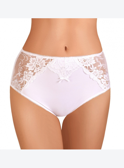 Високі жіночі труси, побудовані на стегнах. Виготовлений з високоякісної мікрофібри. Фасад прикрашен..