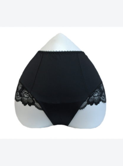 Високі жіночі труси, побудовані на стегнах. Фасад з гладкого мікроволокна. Спинка з тонкої тюлевої с..