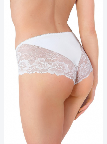 Зручні трусики з ніжної мікрофібри. Класичний крій, злегка забудовані боки. Фасад прикрашений мережи..