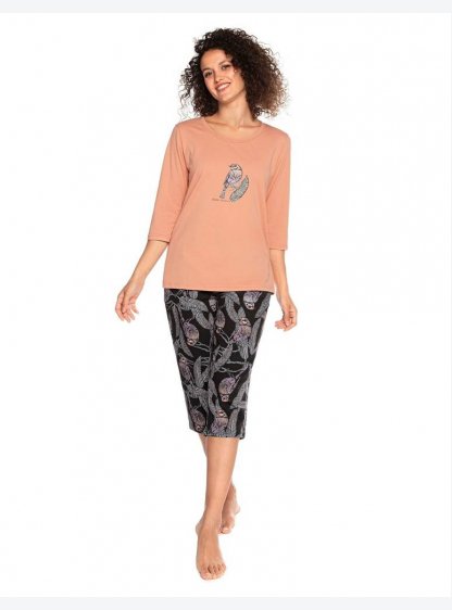 Жіноча піжама з високоякісної бавовни. Футболка з рукавом 3/4, штани з кишенями. Склад: 95% бавовна,..