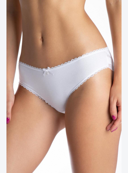 Бавовняні жіночі трусики класичного крою бікіні. Оздоблений мереживною стрічкою. Ззаду гомілки оброб..