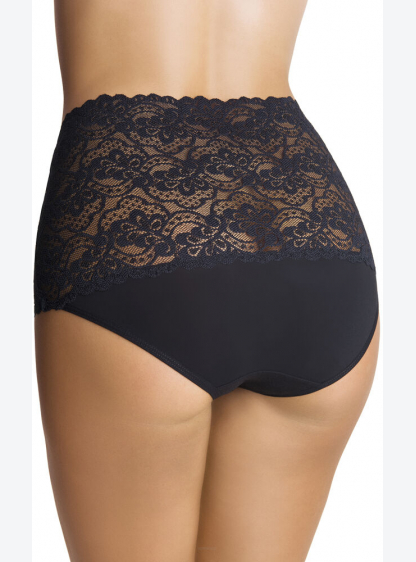 Жіночі повні високі труси, виготовлені з м’якої тканини та мережива. Вони мають посилену спереду, в ..