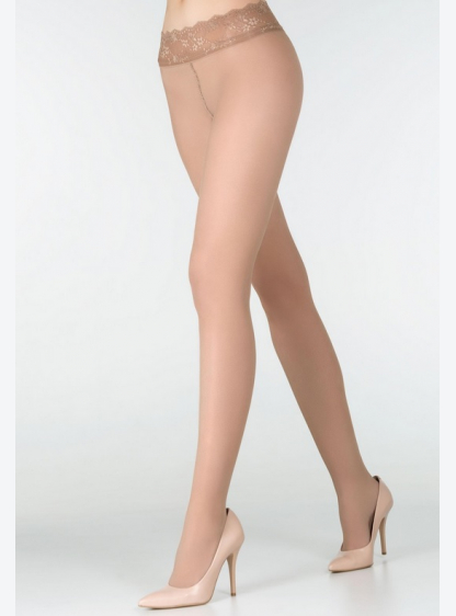 Прозорі колготки, 15 ден, напівматові, оброблені мереживом. Ідеально прилягають до ноги. Без пальців..