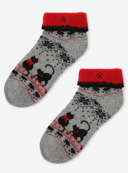 Теплі жіночі шкарпетки з низьким вирізом та зображенням кота. Виготовлені з пряжі найвищої якості, ц..