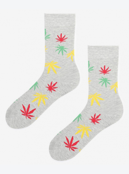 Чоловічі шкарпетки з різнокольоровим принтом листя конопель. Виготовлені з натуральної бавовни найви..