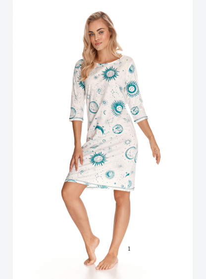 Нічна сукня з високоякісного бавовни, з декоративним принтом спереду та на рукавах. Довжина вище кол..