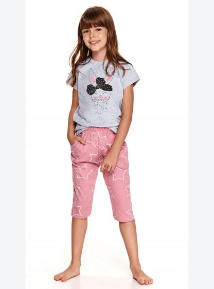 Піжама для дівчат з високоякісної, приємної бавовни. Футболка з короткими рукавами, прикрашена барви..