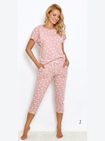 Жіноча піжама в горошок з високоякісної бавовни. Блуза з коротким рукавом, укорочені брюки. Склад: 1..