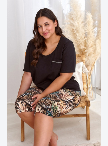 Жіноча піжама з малюнком з високоякісної бавовни. Блуза з коротким рукавом, укорочені брюки. Склад: ..