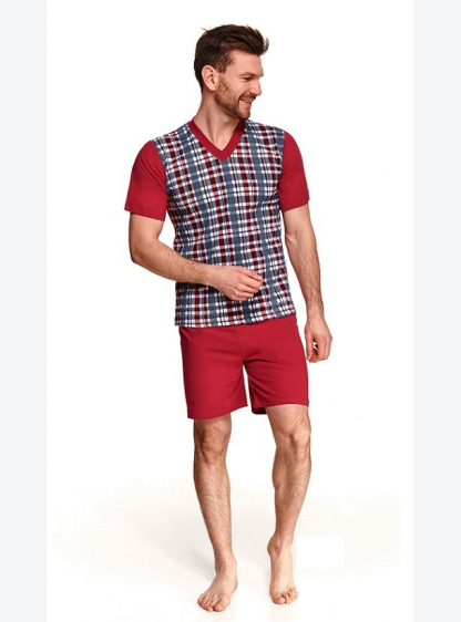 Чоловіча піжама з високоякісної бавовни. Футболка в клітку з короткими рівномірними рукавами. У комп..
