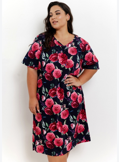 Жіноча сорочка з коротким рукавом з візерункової ніжної бавовни. Круглий виріз, довжина сорочки нижч..