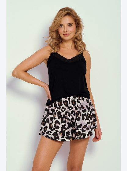 Жіноча піжама з коротким рукавом, однотонна блуза з V-подібним вирізом. Шорти з леопардовим принтом ..
