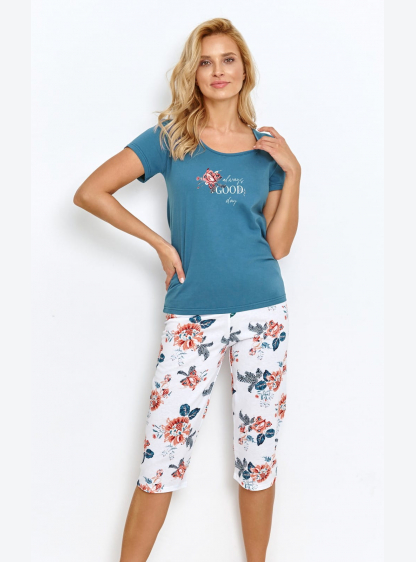 Жіноча піжама з високоякісної бавовни. Гладка блузка з коротким рукавом, брюки 7/8 з малюнком. Склад..