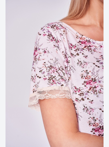 Літня жіноча сорочка з високоякісної бавовни, прикрашена квітковим візерунком. Короткі рукави, оброб..