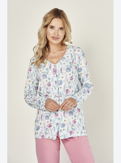 Жіноча піжама з високоякісної бавовни. Блуза з барвистим квітковим мотивом, застібається на гудзики,..