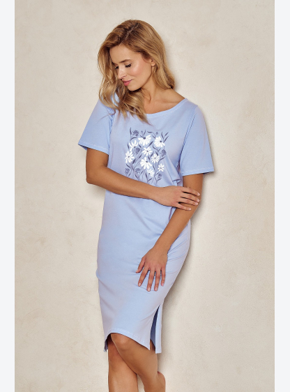 Жіноча сорочка з коротким рукавом, виготовлена з якісної бавовни, з принтом на грудях. Сорочка довжи..