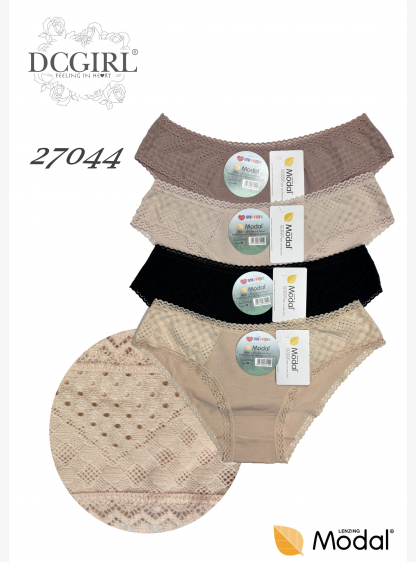 Жіночі труси з ніжного модалу. Ідеально прилягають до фігури. Упаковані по 12 штук в різних кольорах..