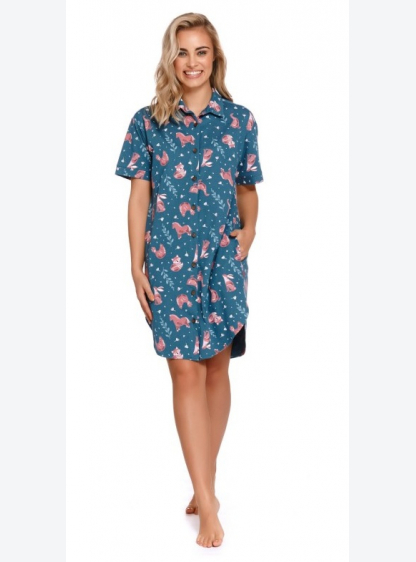 Жіноча нічна сорочка з малюнком з високоякісної бавовни. З короткими рукавами, з коміром, блискавка ..