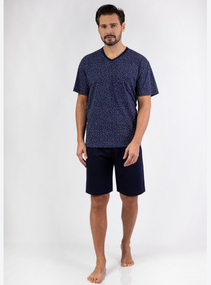 Класична чоловіча піжама з коротким рукавом з високоякісної бавовни. Футболка з малюнком і V-подібни..