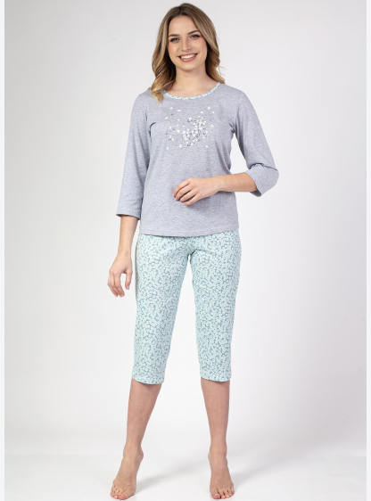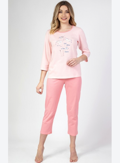 Жіноча піжама з рукавом 3/4, спереду прикрашена принтом. У комплект входять штани рибалки зі зручною..