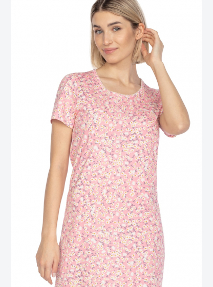 Бавовняна жіноча сорочка з візерунком і короткими рукавами. Довжина вище коліна. Склад: 100% бавовна..