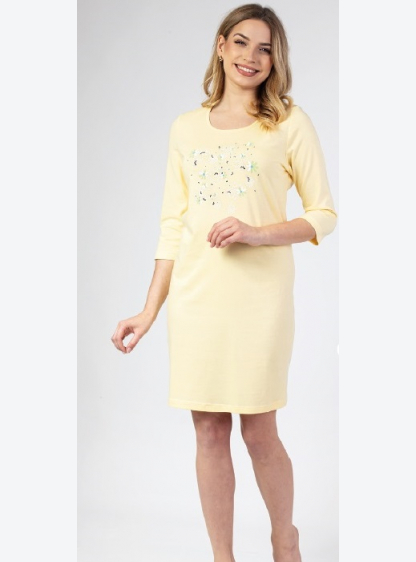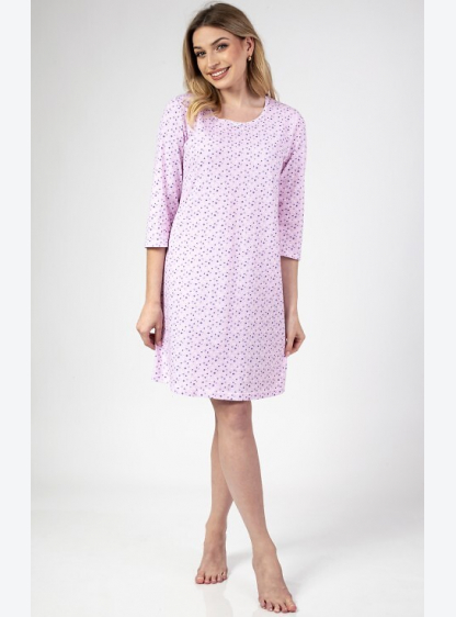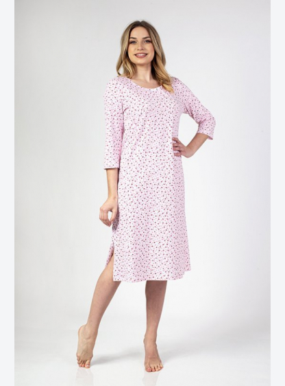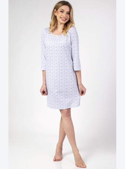 Жіноча бавовняна піжама з рукавом 3/4. Напівкруглий виріз, довжина до коліна, ніжний принт спереду. ..