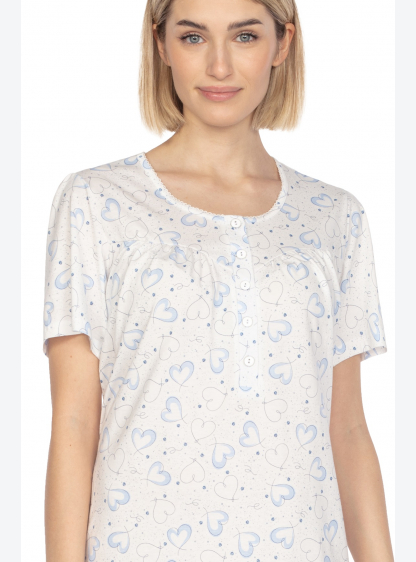 Бавовняна жіноча сорочка, візерунок сердечко. Короткий рукав, круглий виріз, застібається на гудзики..