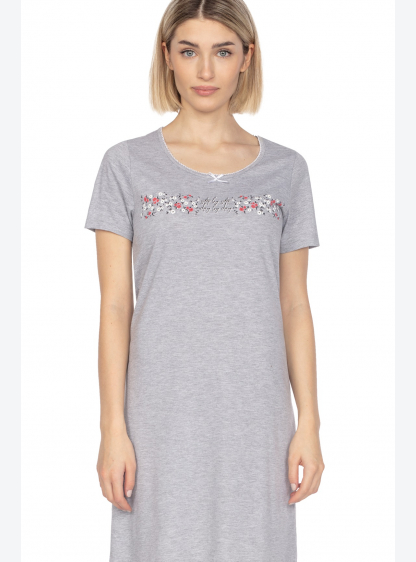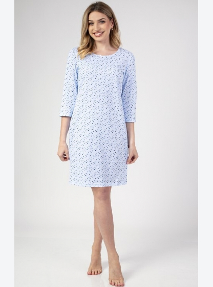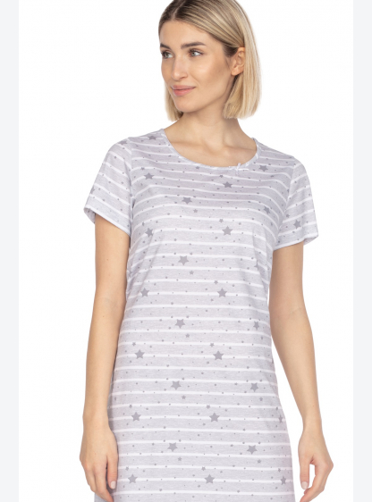Бавовняна жіноча сорочка з візерунком і короткими рукавами. Довжина вище коліна. Склад: 100% бавовна..