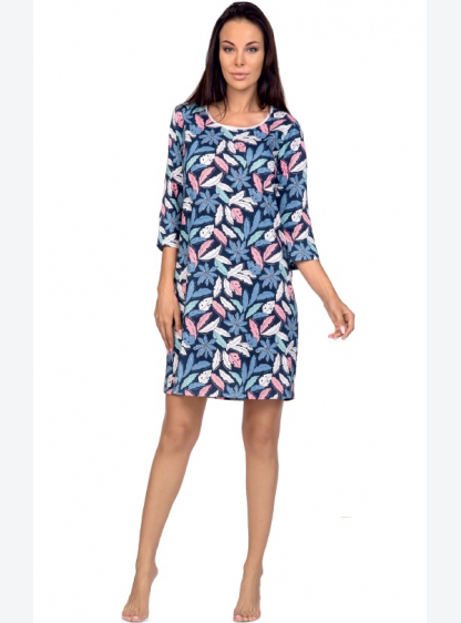Жіноча нічна сорочка з 3/4 рукавами з високоякісного бавовни. Прикрашений витонченим квітковим принт..
