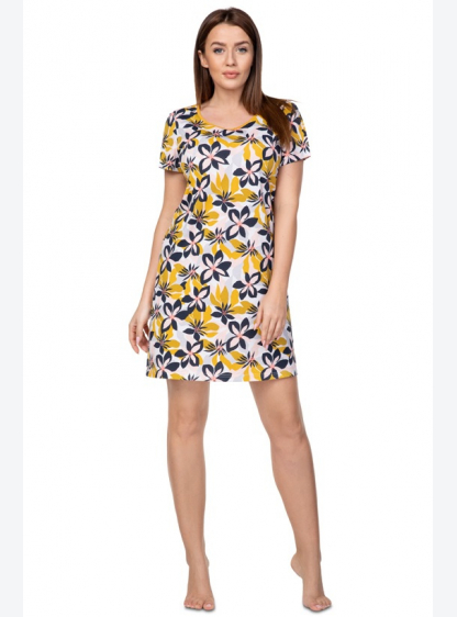 Жіноча сорочка з малюнком з коротким рукавом. Виготовлений з високоякісної бавовни. Довжина до колін..