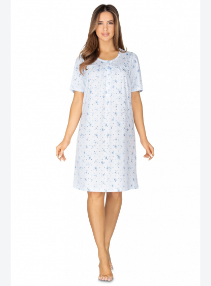 Жіноча нічна сорочка з 3/4 рукавами з високоякісного бавовни. Прикрашений витонченим квітковим принт..