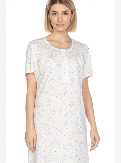 Бавовняна жіноча сорочка, візерунок сердечко. Короткий рукав, круглий виріз, застібається на гудзики..