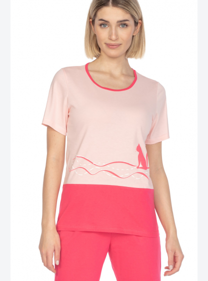 Жіноча піжама з коротким рукавом, виготовлена з ніжної бавовни. Декоративний принт на рівні грудей. ..