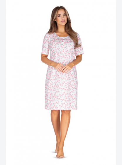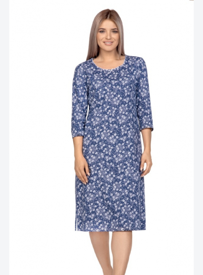 Жіноча нічна сорочка з 3/4 рукавами з високоякісного бавовни. Прикрашений витонченим квітковим принт..