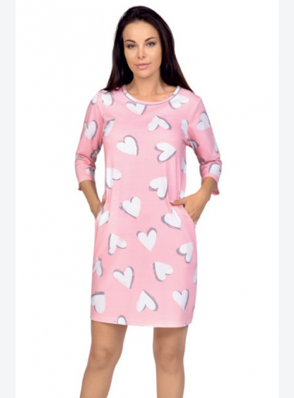 Жіноча сорочка з високоякісної бавовни. Рукав 3/4, довжина вище коліна. Візерунок у серцях. Склад: 1..