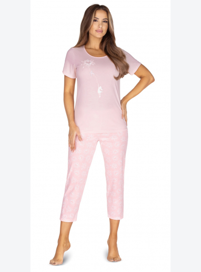 Жіноча піжама з високоякісної бавовни. Короткі рукави, укорочені брюки. Прикрашена ніжною аплікацією..