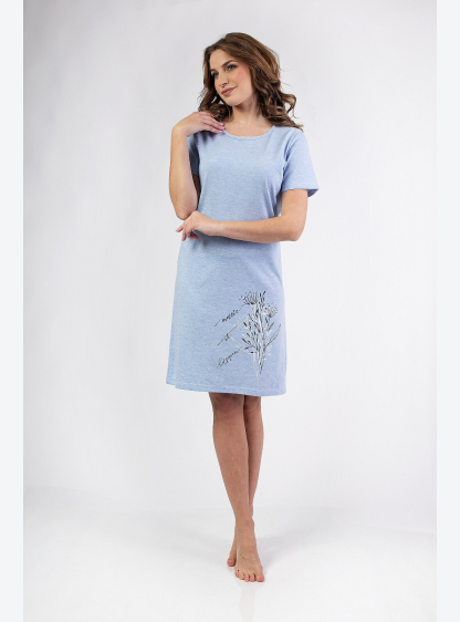 Жіноча бавовняна сорочка з коротким рукавом, по низу прикрашена ніжним принтом. Круглий виріз, корот..