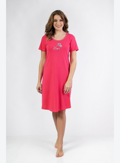 Жіноча бавовняна сорочка з коротким рукавом. Круглий виріз, короткі рукави, довжина до коліна, спере..