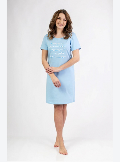 Жіноча сорочка з приємної до тіла бавовни. Напівкруглий виріз, прикрашений контрастною окантовкою, с..